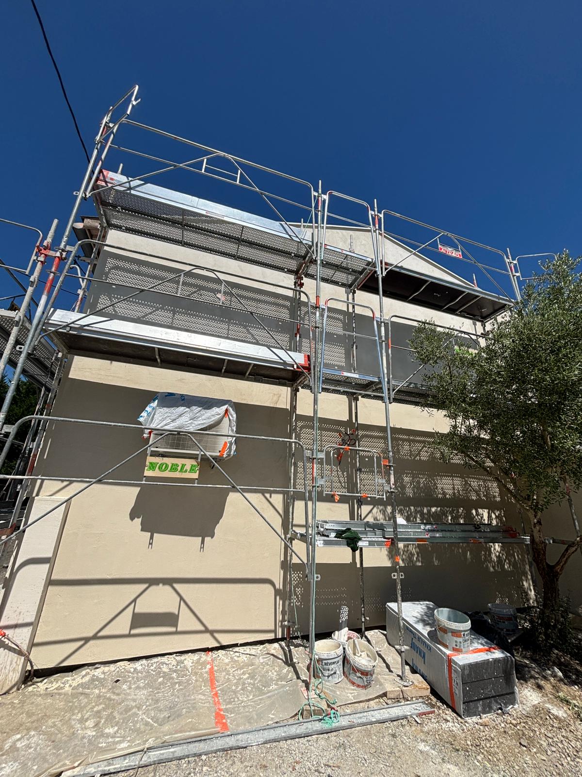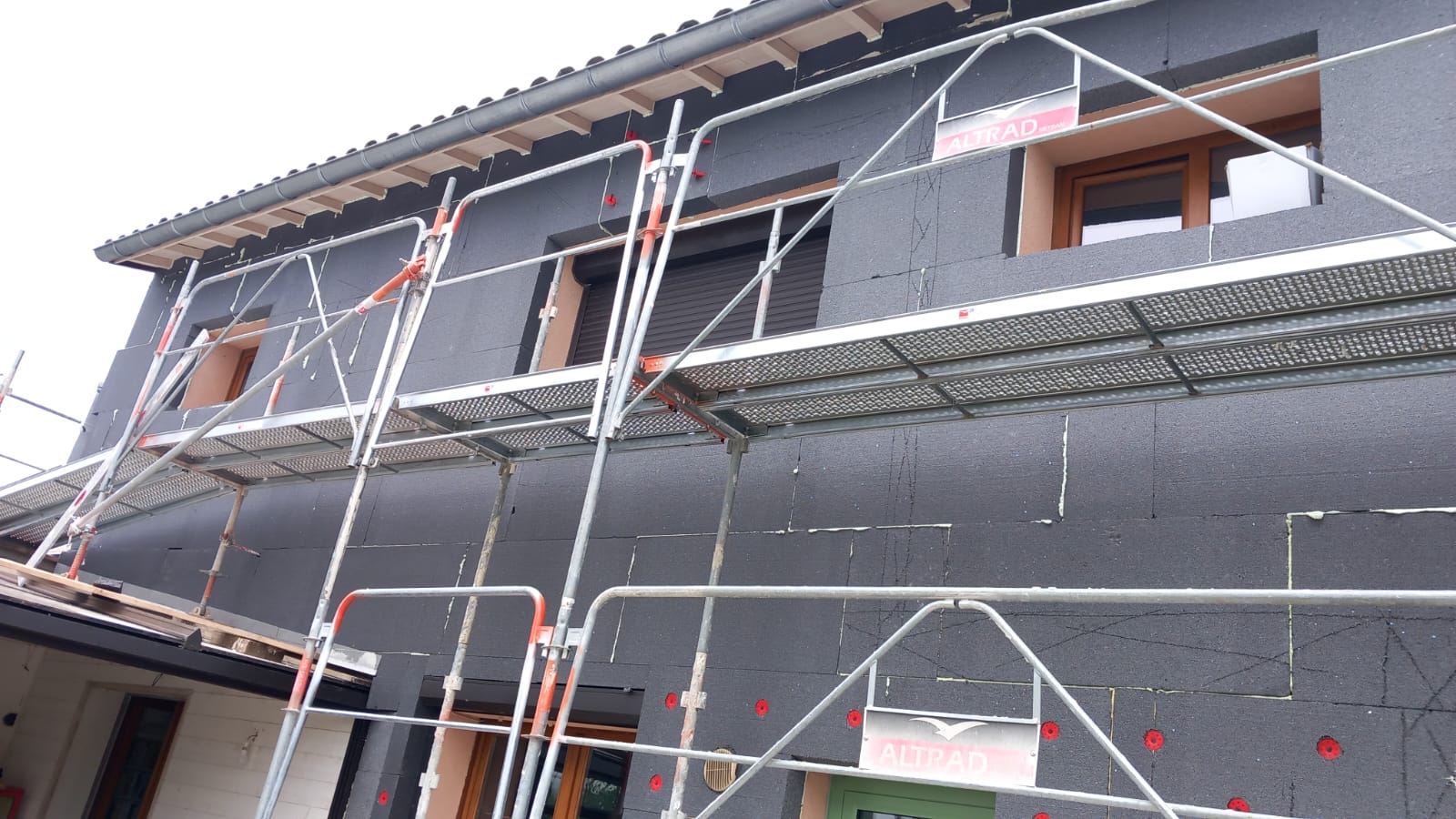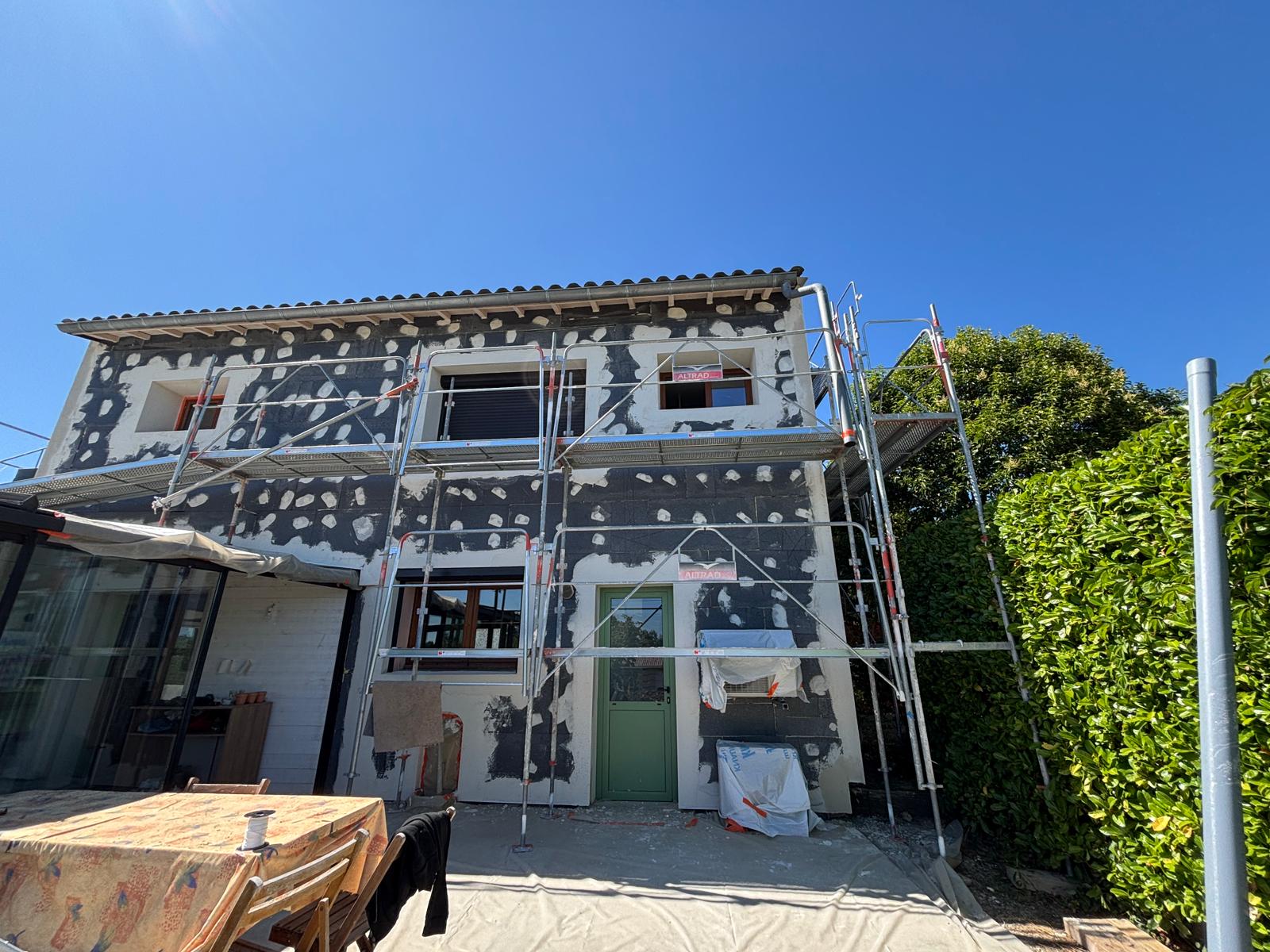 Pour finaliser le système ITE, une finition en enduit mince teinté (RPE) a été appliquée. Ce revêtement protège efficacement l’enveloppe du bâtiment contre les intempéries tout en offrant un rendu esthétique élégant, en parfaite harmonie avec le style architectural de la maison.